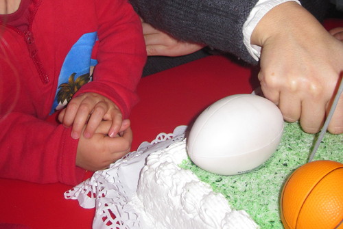 Um bolo cheio de bolas e a casa cheia com a família e os amigos todos que convidámos, sem medo do pouco espaço disponível na nossa sala. Uma festa preparada por nós mas com uma grande ajuda dos amigos que vieram mais cedo pôr a mesa, fazer sandes e preparar lembranças.