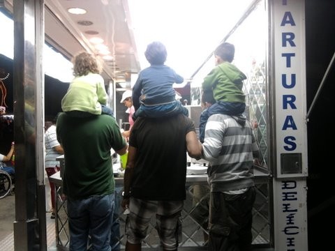 Os amigos e amigas grandes ajudaram imenso nas tarefas que até parecem simples, como almoçar, trazer comida do restaurante ou ficar com eles durante o tempo nas filas...