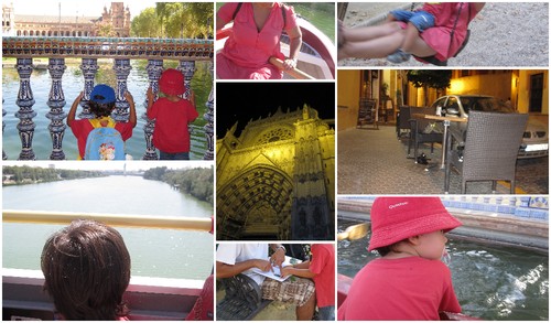 Domingo passeámos quase de sol a sol! Estivemos na Catedral - não pudemos subir à Giralda -, no Bairro de Santa Cruz, na Torre do Ouro, na Praça de Espanha - onde andámos de barco a remos -e no parque Maria Luísa. Passámos o dia a beber água e granizados e, embora também tenha dado imenso jeito nas várias deslocações o dia inteiro, durante a hora do (pior!) calor, enfiámo-nos no autocarro do sightseeing e fizemos voltas seguidas.
