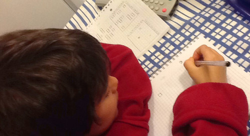 Já escreve o nome, a lápis ou caneta, sem se enganar na ordem das letras [o "G" é que ainda sai um pouco torto].
