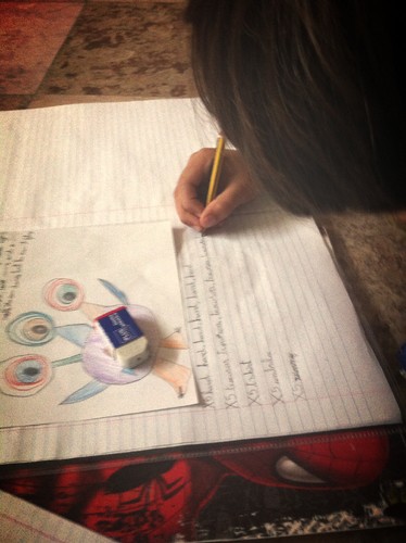 Não acabou um trabalho na escola (aposto que esteve na converseta), teve erros a mais num ditado (que sabia que ia ter hoje e ao qual não fez uma única menção no fim de semana) e, para terminar em beleza, deixou na escola o livro com um dos trabalhos de casa.