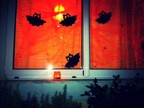 A suspensão do feriado fez com que o Halloween durasse até hoje (só amanhã vamos desenfeitar a nossa janela), dia em que se juntaram aos vizinhos, todos assustadoramente mascarados, e passaram grande parte do serão a bater às portas, num misto doçura-ou-travessura-pão-por-deus.