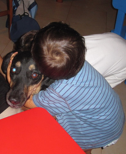 Teve direito a um presente e tudo! Um osso de roer escolhido pelos donos mais novos!