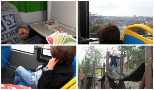 Mal demos pelas horas passadas no comboio, aproveitadas para fazer trabalhos de casa, para grandes jogatanas de Uno e para conversar. Como tínhamos dois convites que a R. nos tinha dado para um autocarro turístico, andámos a passear pela cidade até à hora do lanche. Pelo meio ainda fomos dar uma volta aos jardins do Palácio de Cristal (onde nunca tinha entrado) e fazer uma caminhada num dos sítios de que mais gostamos no Porto - a marginal perto do Castelo do Queijo.